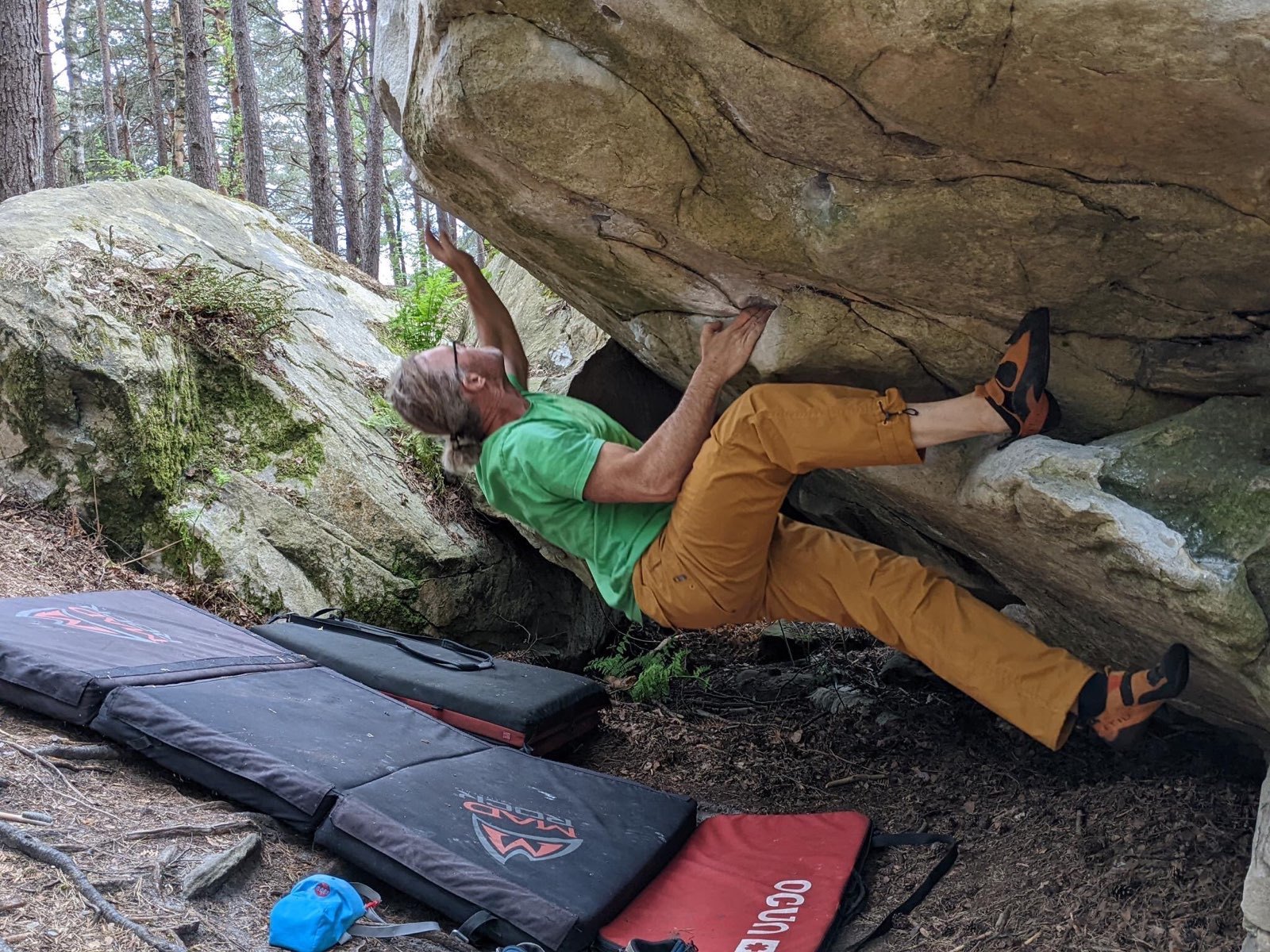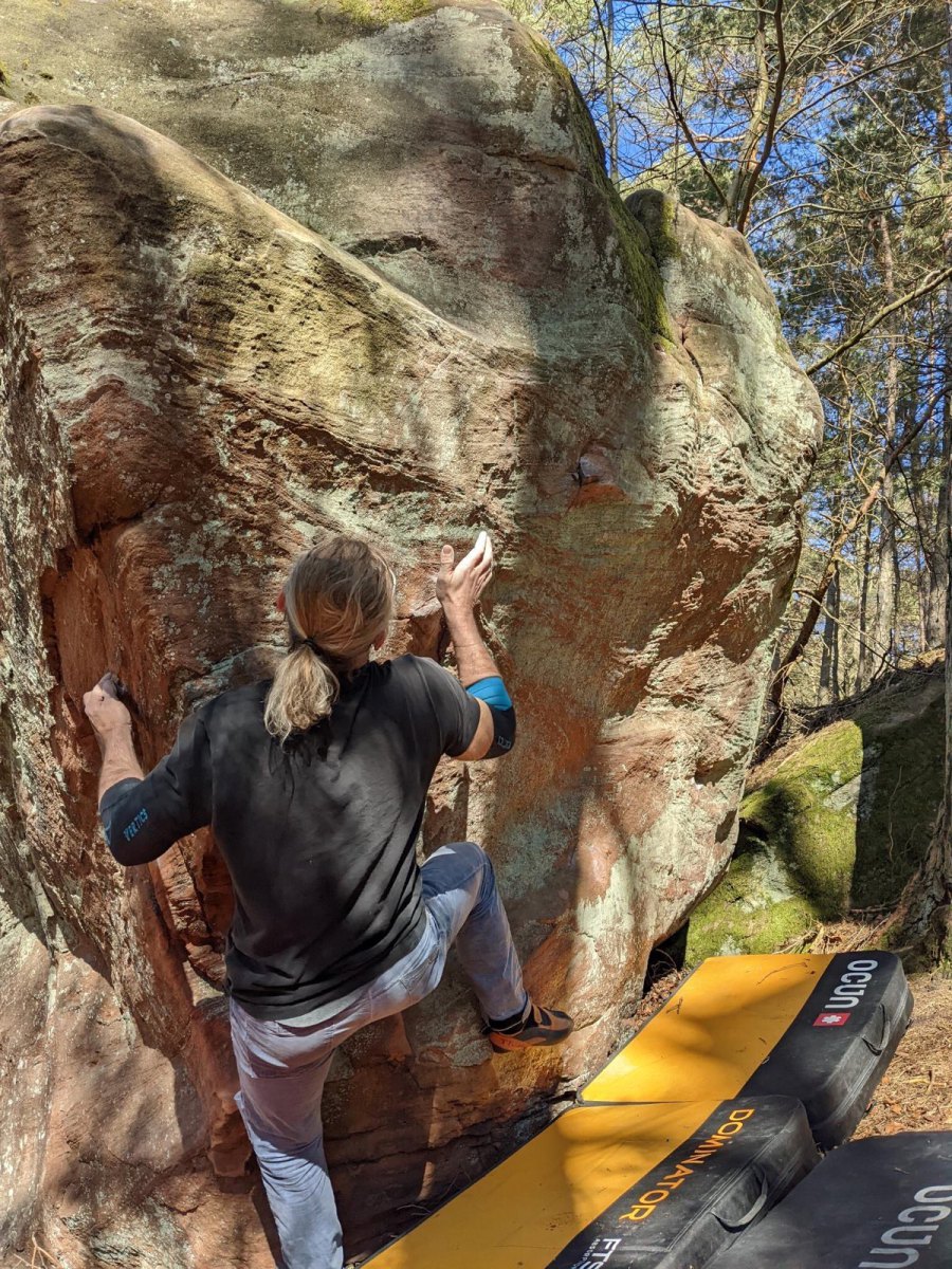 Unzufrieden, aber mit der Bouldersaison vor mir, gab ich dann leider etwas zu heftig Gummi, die ohnehin labilen Ellbogen haben es nicht gedankt. Also kein Training und einfach Klettern und Bouldern bis vor die Schmerzgrenze. Wieder bescheiden werden.