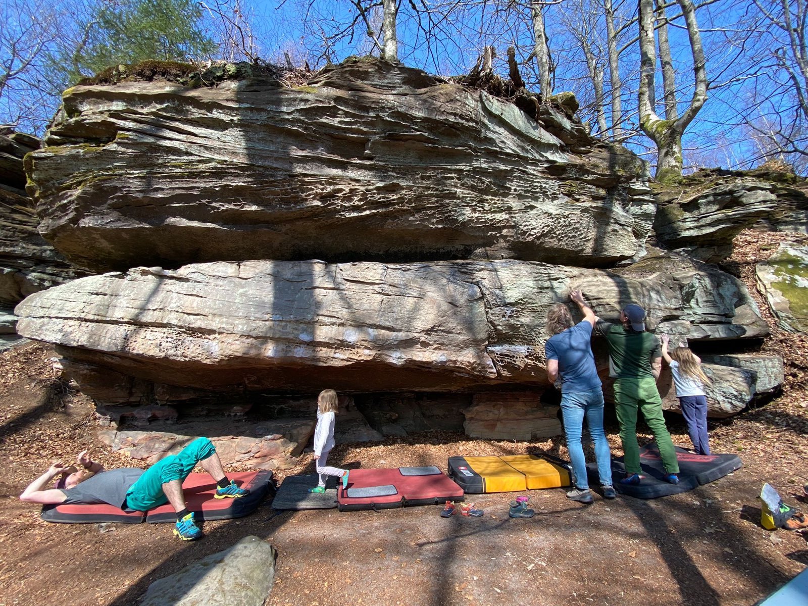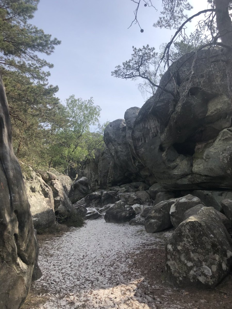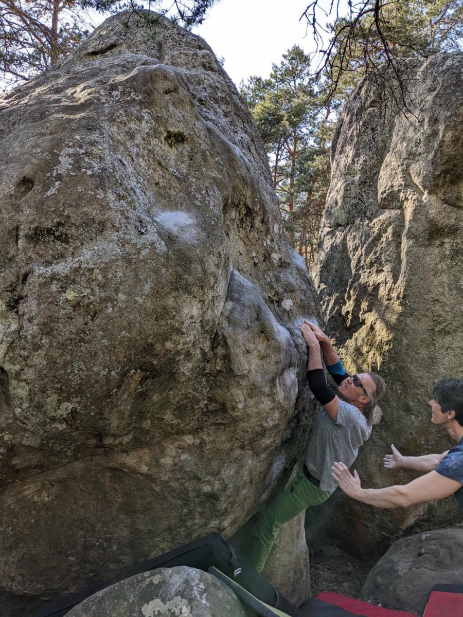 Zurück in Frankfurt boulderte ich viel leichte und mittelschwere Sachen im Taunus und in der Pfalz, den nach dem Kletterurlaub ist vor dem Boulderurlaub. Anfang Mai ging es mit einigen Freunden nach Bleau. Mangels „Bums“ sah die Ticklist diesmal deutlich bescheidener aus als sonst. Aber die Grade 6c und 6c+, die man sonst gerne für eine 7 vorne dran überspringt, können es auch ordentlich in sich haben….und genauso Spaß machen.